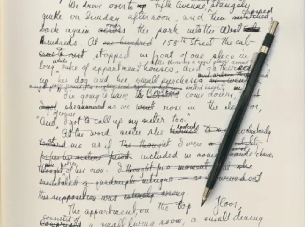 Printed out just the first 100 pages of the book and instead of going through it with a pen, as I normally do and which turns me into a stodgy perfectionist, I just held one of the fat black Sharpies and set a rule: for the first 25 pages of this edit I could not re-write anything—I could only drag the Sharpie across words, redaction-style. Instead of that haunted eternal question, How Do I Fix This, the only thing I was allowed to ask myself was, Why Is This Here?